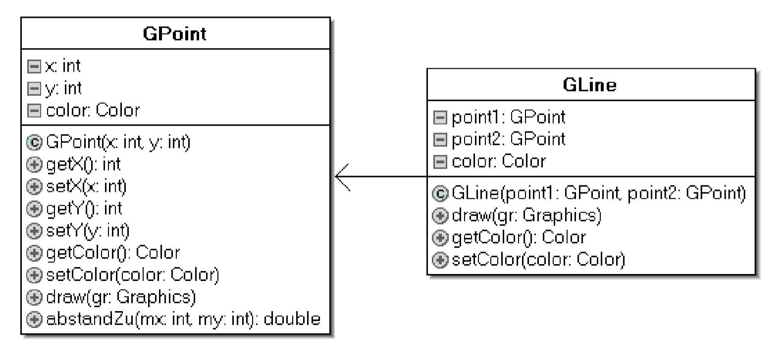 Erstelle eine weitere neue Klasse GLine, die dem oben angegebenen UML-Diagramm entspricht.